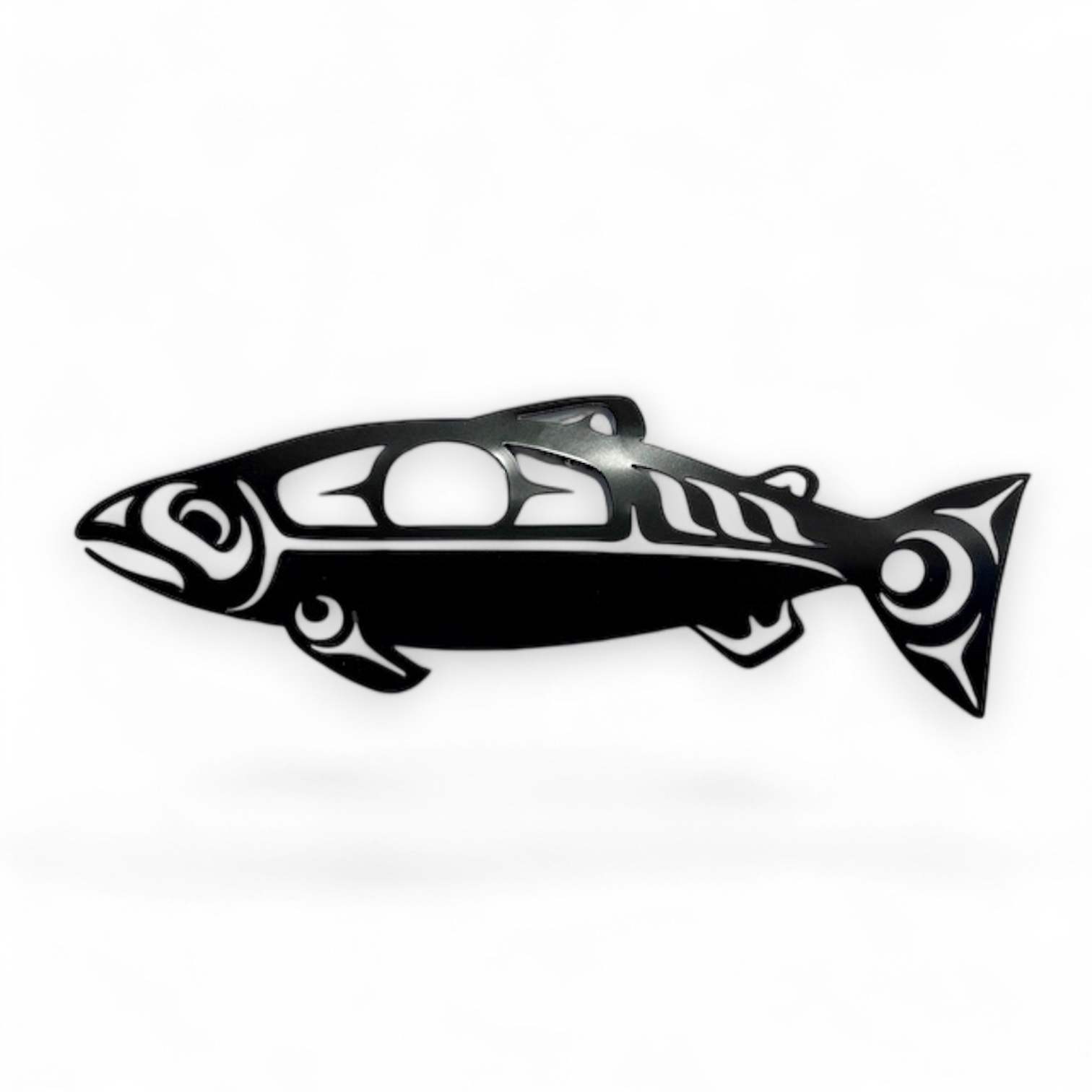 The First Nation’s Salmon is a sleek beautiful piece designed by local Snuneymuxw Artist Noel Brown, in collaboration with the late Artist,  Jack Willoughby